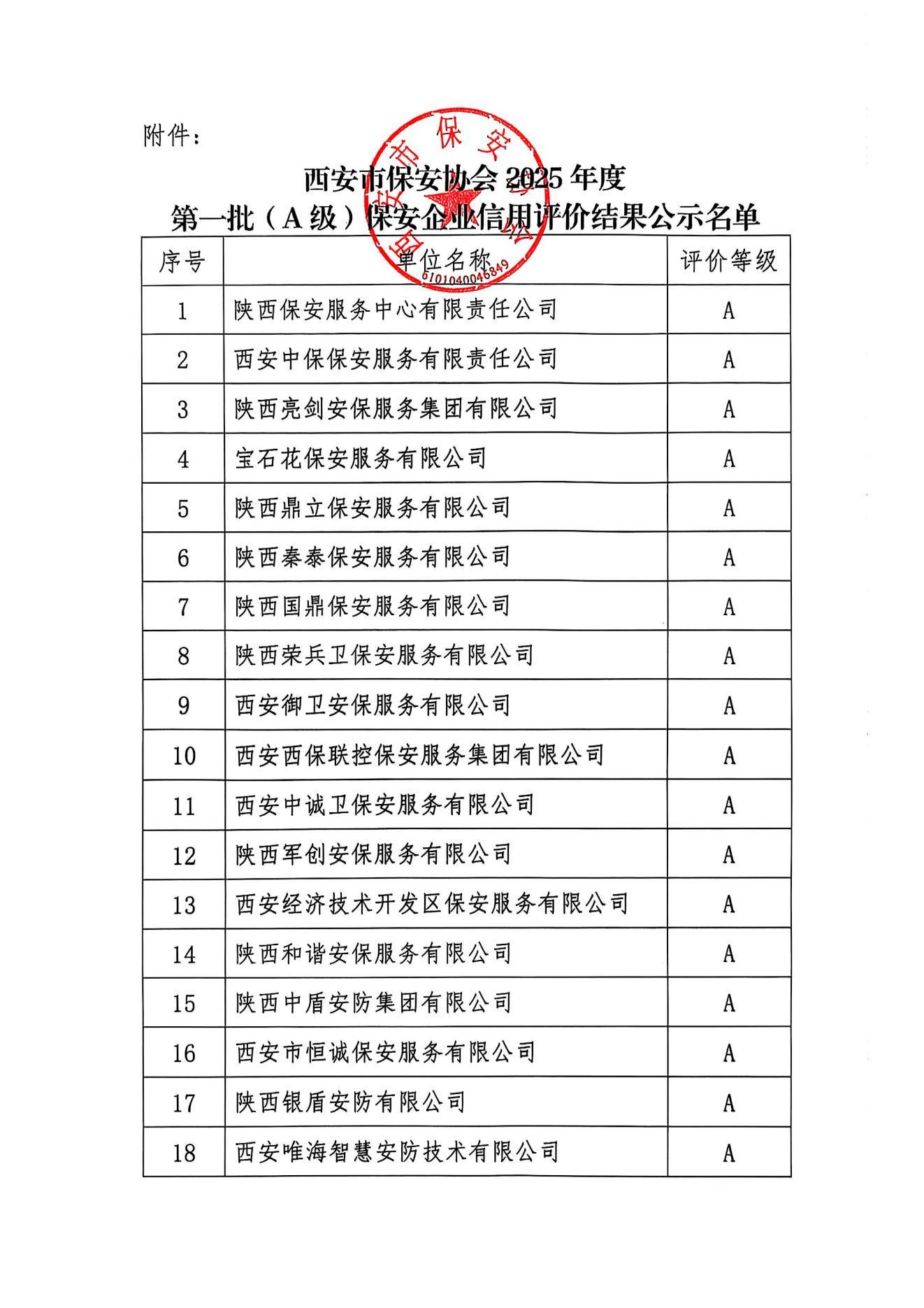 98098彩票2025年度第一批(A级)保安企业信用评价结果公示